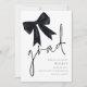 Grad de graduation Black Bow Enregistrer la date. Disponible numériquement et imprimé. Cette conception a un coquette noir arc à gauche et un ensemble informel de style d'écriture manuscrite script pour l'en-tête principal, grad, et facile à personnaliser typographie à droite en bas avec vos détails.