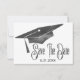 Belle, simple graduation moderne enregistrer la carte de date à envoyer à la famille et amis. Dispose d'un capuchon de graduation avec un aspect d'aquarelle noir et gris. Magnifique carte moderne et simple pour enregistrer une date pour un diplôme.