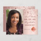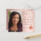 On front: Add your own vertical size photo of the graduate. A rose gold, blush background colour, decorated with stars. Personalize and add a name and date. The name and the text: Save the Date are written with a modern hand lettered style script.