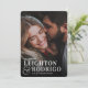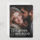 Annoncez votre date de mariage avec ces audacieuses et modernes typographie basée enregistrer les cartes de date. Le design est doté d'une photo à fond saigné unique, verticale ou à orientation portrait, avec vos noms superposés en lettres blanches et reliés par un grand écran. Personnalisez avec votre date et votre emplacement mariage, et ajoutez des détails supplémentaires au dos si vous le souhaitez.