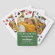 Announce your wedding date in style! These fun custom wedding save the date playing cards feature an engagement photo, monogram of the bride and groom's names, wedding date, and ceremony location. White text and green background colour can be modified.