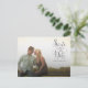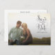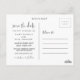 Gorgeous neutral grey/grey cursive script typography on the front of this designer postcard which you can upload into with your own engagement/save the date photo portrait. Easily and quickly personalize this designer professionally printed save the date postcard here and now by just typing over the example text and adding your own photograph. Elegant, chic, simple and classy navy script/cursive typography