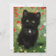 Carte avec un chaton Gustav Klimt ! Ce chaton noir porte un collier d'argent et s'assoit dans un champ de fleurs rouges, bleues, blanches et jaunes. Un cadeau merveilleux pour les amateurs d'art amoureux des chats et autrichiens !