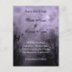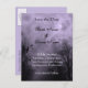 A custom wedding or party announcement postcard template with a background of a spooky Halloween sky with misty trees along a dark haunted road, gothic ravens and a cloudy full moon with a violet, purple mist. Click Customize it to change fonts, sizing, text and more, even save your design for later.