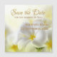 Pretty plumeria Hawaiian save the date wedding magnet. The white and yellow plumeria is the tropical flower design with personalized text template for names of the couple, wedding date, and island location to help your invited guests plan for transportation to or between the islands.