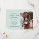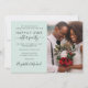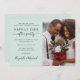 Réception de mariage chic vert menthe pastel enregistrer l'annonce de la date qui présente votre photo et "Happily Ever After Party" dans la typographie moderne et un script élégant avec des swashes. Personnalisez votre enregistrement des détails de la date et ajoutez vos noms dans un script de type signature.