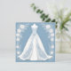 Robe de mariée élégante sur fond bleu invitation pour mariage ou douche de mariée