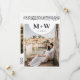 Mariage recto verso enregistrer la carte de date en blanc avec teinte noire muette. Photo sauvegardez la date avec vos initiales en grandes lettres de charbon sous les fleurs dessinées à la main et la verdure. Art floral enregistrer la carte de date personnalisée avec votre photo.