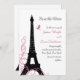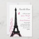 Une grande tour Eiffel élégante et majestueuse décore ce faire-part de mariage. Les subtiles nuances de rose et de gris, et l'écriture française fantaisie, mettent en avant le romantisme de votre soirée parisienne. Cette invitation est affichée sur le papier de base; cependant, je recommande le poids et la texture du papier de lin. Cette Enregistrer la date fait partie d'une ligne de mariage complète; cependant, si des articles supplémentaires sont nécessaires, il suffit de nous le faire savoir.