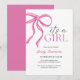 Elegant and Modern Baby Girl Shower Invitation in pink and gray, adorned with a Stylish pink ribbon and personalized Typography. Perfect for a Trendy and Memorable Celebration!