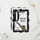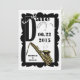 Assurez-vous que vos amis et proches sont là pour votre mariage avec ces cartes Retro Style Jazz Enregistrer les cartes Date en noir et blanc. Le saxophone doré et ajoute une touche de couleur. Les cartes sont dans le style d'une affiche rétro, et disposent d'un saxophone avec des notes musicales, deux verres grillés, et la phrase fantaisiste "danse manger boire célébrer / vivre l'amour rire chante" pour ajouter une touche décorative.