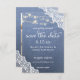 Envoyez une carte de date pour préparer vos invités à célébrer votre mariage ou votre fête avec ce jean, dentelle, et lampes à cordes Fleur de pays enregistrer la carte de date.