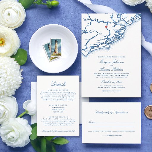 Save The Date Johns Island SC Map Elegant Navy Blue Wedding