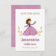 Il faut enregistrer les cartes de date pour une fête d'anniversaire de quinceanera. Personnalisez le texte avec vos propres informations et cliquez en personnaliser pour changer les choses dans la conception. Veuillez noter que les détails en or sont imprimés et qu'aucun papier ne sera ajouté à la carte. Illustré et dessiné par Patricia Alvarez.