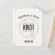 Simple and modern "Save the Date" announcement postcard features faded brown rope border and small turquoise heart.