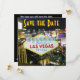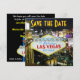 Las Vegas save the dte wedding announcement for Las Vegas brides and grooms. Design features aerial photo of The Strip at night.