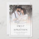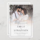 Ligne de superposition photo moderne Code QR. Un design entièrement personnalisable avec un code QR à votre site web mariage à l'arrière afin que vos invités puissent RSVP et voir tous les détails en ligne sans avoir besoin d'enceintes séparées. Votre code QR sera généré automatiquement pour mettre à jour l'exemple de code dans la conception, lorsque vous changez simplement l'exemple d'URL dans le modèle avec votre propre URL de site mariage. La typographie moderne et simpliste que vous pouvez facilement personnaliser. Remplacez l'exemple de photo par votre préféré. De chaque côté, il y a une bordure à une seule ligne.