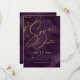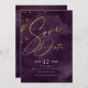 Un arrière - plan d'aquarelle dans les tons violet prune est surmonté d'une abstraite de lignes dorées fines et d'effets lumineux scintillants pour créer les pièces de cette belle suite mariage. La carte "Enregistrer la date" mariage présentée ici présente également du texte bas centré et une calligraphie élégante. Ajoutez facilement vos propres noms, date mariage et informations en utilisant le modèle fourni. Recherchez ID867 pour voir d'autres pièces et choix de couleurs pour cet ensemble.