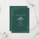 Illustration de grange rustique avec bordure botanique d'art en ligne. L'Arrière - plan est de couleur émeraude foncée.