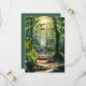 Forêt enchantée Sauvegardez la carte Date avec un chemin ensoleillé dans une forêt avec des lumières scintillantes. Sur le dos est l'espace pour votre photo personnalisée.
