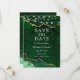 Carte de sauvegarde de date de géode d'agate de marbre vert émeraude et or aquarelle élégante moderne avec des lumières de chaîne