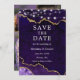 Carte de sauvegarde de géode d'agate de marbre violet et or aquarelle élégante moderne avec lumières de chaîne - Dos photo