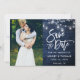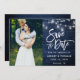 Save The Date Lumières de pot en bois bleu rustique Script photo