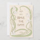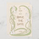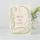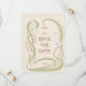 Une carte faire-part mariage au design d'inspiration Art nouveau, avec des lys blancs aux feuilles verts, formant un cadre fluide organique sur un arrière - plan beige. Les deux camps peuvent être customisés.