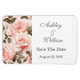 This Save the Date flexible magnet is shown in a classic formal layout in the colour white with grey text and script text highlighting the Bride and Groom names and accented with a lovely pink rose's print.