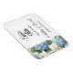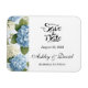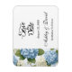 Save the Date Magnet is shown in a classic formal layout in the colour white with Black text and script text highlighting the Bride and Groom names and accented with a hydrangea flowers print.