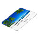 Save the Date flexible magnet is shown with a photo print of a beautiful tropical beach.