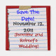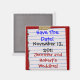 "Save The Date!" in bold blue with the date in black text on a note written on a sheet of paper taped to a red background. Sample text says: "Jennifer and Robert's Wedding!" in red. Easily change the text colours to your taste. Also, just click on "Customize it" and then "edit" and then "background" to change the red background. A fun magnet that's sure to be the perfect reminder for anyone. Easy to customize the text in your own words and that special day not to be forgotten! Great for upcoming weddings, birthdays, anniversaries, showers, reunions, any special occasion and save the date. Just don't forget to save that date!