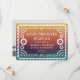 Ce beau mariage en papel picado inspiré à l'exception de la date design dispose d'un cadre et un texte blanc orné, l'arrière - plan de dégradé serré au coucher du soleil, et la typographie moderne. Ce design élégant et moderne est un choix fabuleux pour un mariage latino ou un mariage de destination mexicaine. Sur le dos se trouve votre propre photo horizontale "plein sang", qui peut être enlevée si désiré.