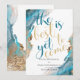 Save the Date Marbled Ink Turquoise and Gold Invitation