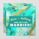 Annoncez votre mariage traditionnel ou de destination avec ce modèle facile à mettre à jour. Il vous suffit de remplir le nom, l'âge, la date, l'heure, l'emplacement de la partie et les notes de la RSVP ou d'autres renseignements. Changez de "Marc et Anthony se marient !" à "Les Willoughby's accueillent Noël !" Disponible dans de nombreux designs pour chaque occasion. L'élégant design est orné d'une peinture à l'encre d'alcool avec des verts bleu turquoise et des teals aux accents marbrés blancs. Faux 24K Gold Leaf complète le luxueux motif.
