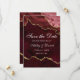 Carte de rendez-vous de mariage élégante moderne aquarelle burgundy et or Marbre Géode d'agate