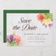Cette élégante carte florale enregistrer la date présente des floraisons vibrantes avec les mots "enregistrer la date" dans le script tendance tout contre un arrière - plan en marbre clair sur le devant et une couleur verte sur le dos. Personnalisez cette carte en remplaçant le texte de l'espace réservé dans le modèle pour ajouter vos informations. Pour plus d'options comme changer la police et sa taille/couleur ou l'espacement entre les lettres cliquez sur le bouton "Personnaliser". *Veuillez noter que le filigrane Zazzle qui apparaît dans l'aperçu du zoom n'apparaîtra PAS sur le produit imprimé final. © Bois de rose et agrumes