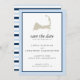 Enregistrer la date de mariage pour votre mariage à Cape Cod. Carte de Cape Cod avec un cœur rose sur Dennis Port, Massachusetts. COULEURS en bleu Hydrangea, marine, blanc avec un cœur rose. Le cœur est déplaçable si vous avez besoin d'un emplacement différent. Si vous souhaitez apporter des modifications au design, veuillez envoyer un courriel à paula@labellarue.com AVANT DE PASSER UNE COMMANDE afin qu'un nouveau design puisse être créé pour vous.