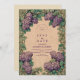 Romantique et intemporelle, cette décoration mariage Art Nouveau présente des fleurs lilas luxuriantes dans des tons mauves, encadrées d'un élégant feuillage vert sur un arrière - plan vintage. Le style botanique orné mêle l'art classique à la beauté naturelle, ce qui en fait un lieu idéal pour les mariages de printemps, les cérémonies de jardin ou les couples qui aiment l'élégance florale avec une touche de nostalgie. Entièrement personnalisable avec vos données personnelles.