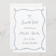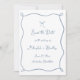 Coquette à main blanche Bow Dusty Blue Wedding Enregistrer la Date avec un cadre à ruban ondulé et une police de style manuscrit. Ajoutez des détails supplémentaires à l'inverse.