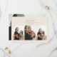 carte de faire-part de mariage à calligraphie moderne avec 4 photos. Cette carte élégante comprend un collage de 3 photos sur le devant et 1 au dos avec un texte et un fond personnalisés.