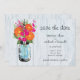 Save The Date Mariage Champêtre avec Pot Mason en Verre Fleurs d