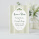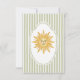 Cette carte de sauvegarde de date de mariage côtier fantaisiste comporte une bordure en dentelle, des palmiers et un fond rayé vert sauge élégant. Parfait pour un mariage sur la plage ou en Californie. Un soleil rétro vintage est encadré dans un cadre en dentelle fantaisiste au dos. Créé par Simply Farmhouse Press.