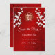Save The Date Mariage chinois double bonheur cerise fleurs