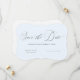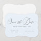 Élégant et formel Enregistrer la carte de date avec script de calligraphie et texte minimal en bleu clair et gris foncé. Les noms, la date, l'emplacement et le texte supplémentaire ainsi que toutes les couleurs peuvent être modifiés sur cette Classic Enregistrer l'invitation de date pour votre prochain mariage. Un choix classique pour tout mariage élégant.