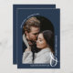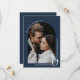 Les cartes de save the date de mariage bleu marine présentent votre photo préférée, une esperluette stylisée sur le devant et le code QR de votre site web de mariage au verso. Ajoutez facilement le code QR de votre site web de mariage en entrant simplement l'adresse URL dans la zone de texte pour le créer et l'ajouter à vos cartes. Le service de conception en ligne peut vous aider à concevoir votre mise en page si besoin. Articles CORRESPONDANTS dans notre boutique.