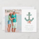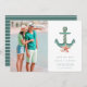Capturez l'essence de la romance balnéaire avec notre Mariage côtier Photo Save the Date. L'avant est ornée d'une superbe photo et d'une ancre marine verte turquoise ornée de coquillages, symbolisant magnifiquement votre célébration au bord de la plage. Retournez-le pour apercevoir un motif à rayures design sur le dos, ajoutant une touche de charme nautique. Parfait pour inviter vos invités à partager la joie de votre mariage côtier et marquer leurs calendriers pour une journée remplie d'amour et de brises océaniques!
