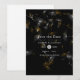 Mariage de confettis en or rustique et en pissenlit blanc, sauvegardez la date contre un arrière - plan noir.
