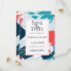 Gravure de peinture abstraite moderne dans le magnifique corail des Caraïbes, turquoise et bleu, mariage, sauvegarder la carte de date. Personnalisez le style, la couleur et la taille de la police de texte.