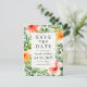Donnez le ton à votre mariage à thème tropical avec cet hibiscus à l'aquarelle et ce feuillage tropical sauvez la carte Date. Un choix parfait pour les mariages sur la plage, les mariages de destination, les mariages tropicaux et plus encore. Personnalisez avec vos noms, votre date de mariage et votre emplacement en modifiant l'exemple de texte dans le modèle de conception facile à utiliser. Aloha !